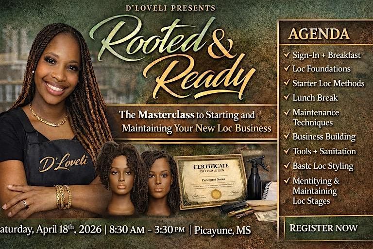 Ready to take your loc business to the next level? Join us in person for this exciting masterclass where you'll get hands-on tips and real talk on how to launch and maintain your loc biz like a pro. Whether you're just starting out or looking to grow, this event is packed with everything you need to stay rooted and ready for success!