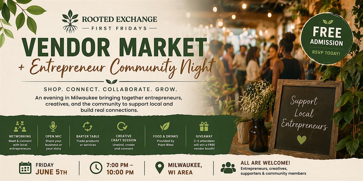 Rooted Exchange First Fridays: Vendor Market + Entrepreneur Community Night