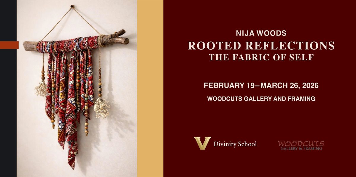 Religion in the Arts and Contemporary Culture and the Kelly Miller Smith Institute on Black Church Studies at Vanderbilt Divinity School in partnership with Woodcuts Gallery and Framing announces the Black History Month Exhibition, Rooted Reflections: The Fabric of Self with artist, Nija Woods.