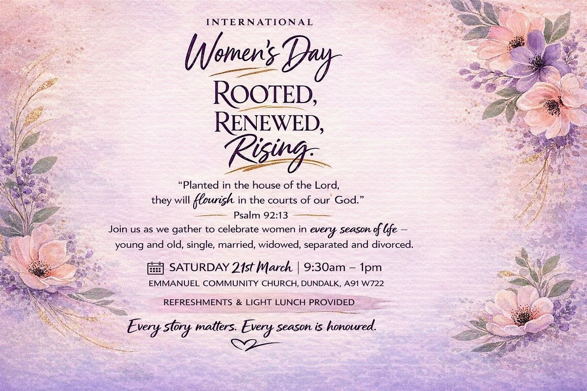 This special International Women’s Day event is for women young and old, single, married, widowed, separated, and divorced. Together we will celebrate stories of faith, growth, and renewal.