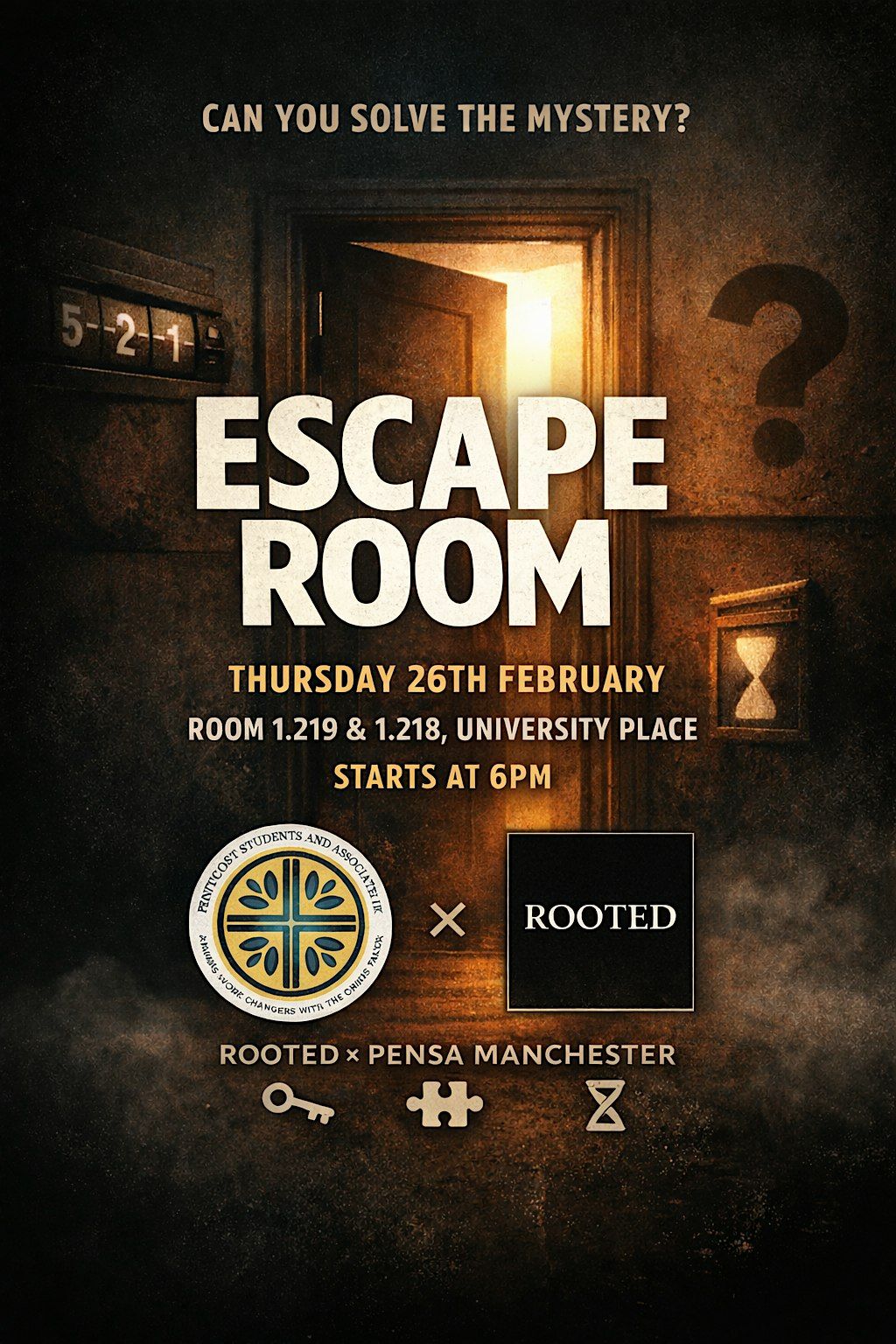 Join us for a collab you don’t want to miss — Rooted x Pensa Manchester’s Escape Room Night.