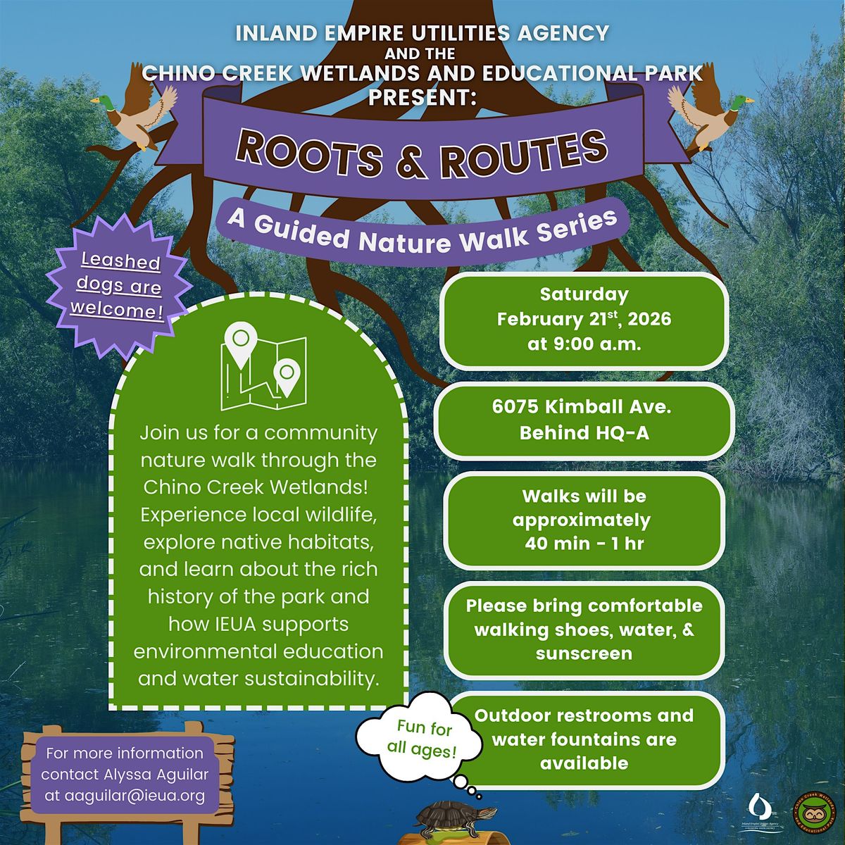 Join us for a community nature walk through the Chino Creek Wetlands! Experience wildlife and learn the rich history of IEUA & the park!About this Event