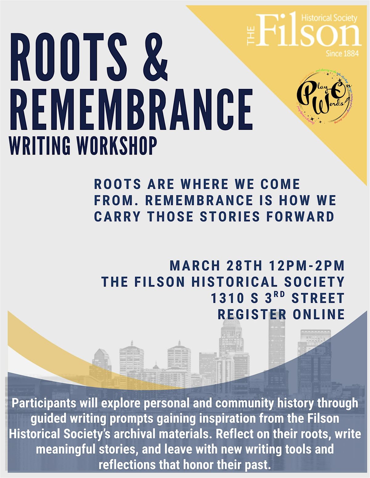 Participants will explore personal and community history through guided writing prompts gaining inspiration from the Filson Historical Society’s archival materials. Reflect on their roots, write meaningful stories, and leave with new writing tools and reflections that honor their past.