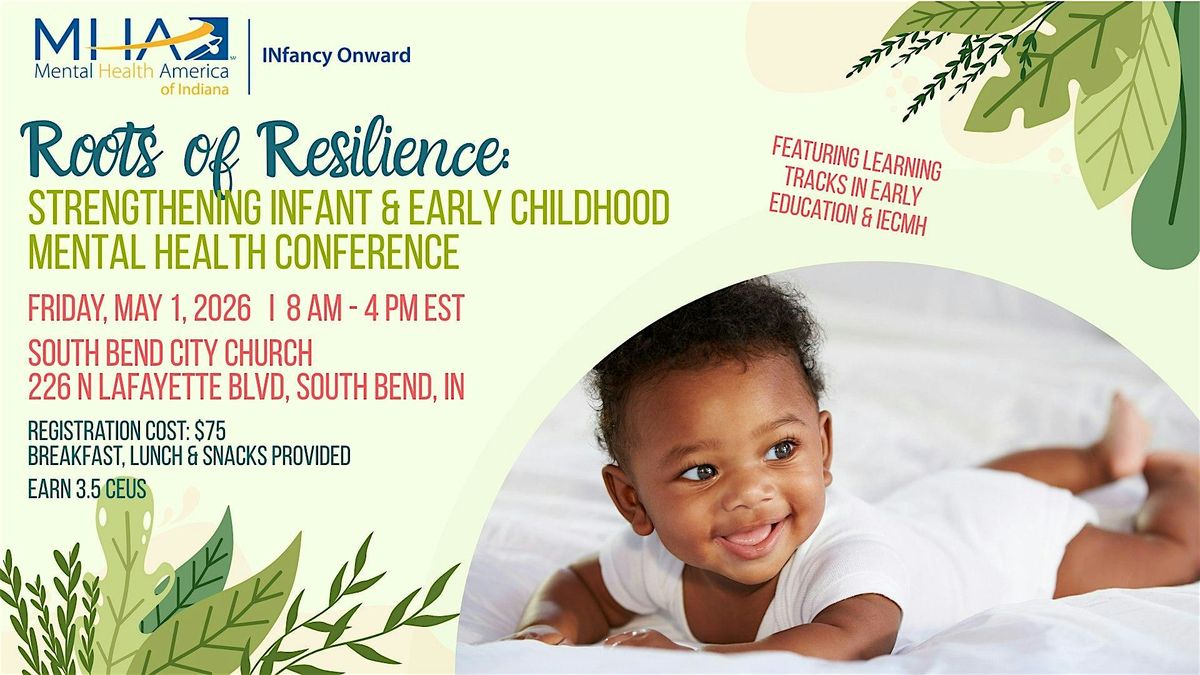 Infancy Onward invites early childhood professionals from across Indiana to gather for Roots in Resilience: Strengthening Infant and Early Childhood Mental Health, a dynamic conference focused on building strong foundations for our youngest children, their families, and the workforce that supports them.In today's environment of increasing stress, workforce challenges, and evolving policy landscapes, resilience is not just a protective factor; it is essential. This conference will explore how relationships, reflective practice, research-informed strategies, and systems-level advocacy can strengthen infant and early childhood mental health across settings.Participants will engage in learning tracks focused on: