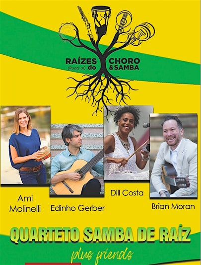 Roots Samba and Samba de Raiz is Brazil's national music performed with acoustic instrumentation. Featuring 7-string guitar player, Edinho Gerber and Brian Moran on guitar and cavaco, Ami Molinelli on percussion and vocalist Dill Costa, a native of Rio de Janeiro, get ready for an evening of old sambas, brazilian jazz and bossa nova.