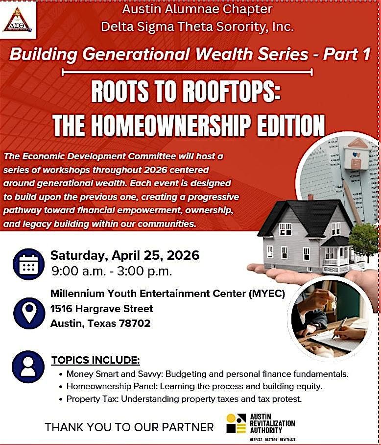 Join the Austin Alumnae Chapter of Delta Sigma Theta Sorority, Inc. for a day of financial empowerment, homeownership insights, and legacy building.