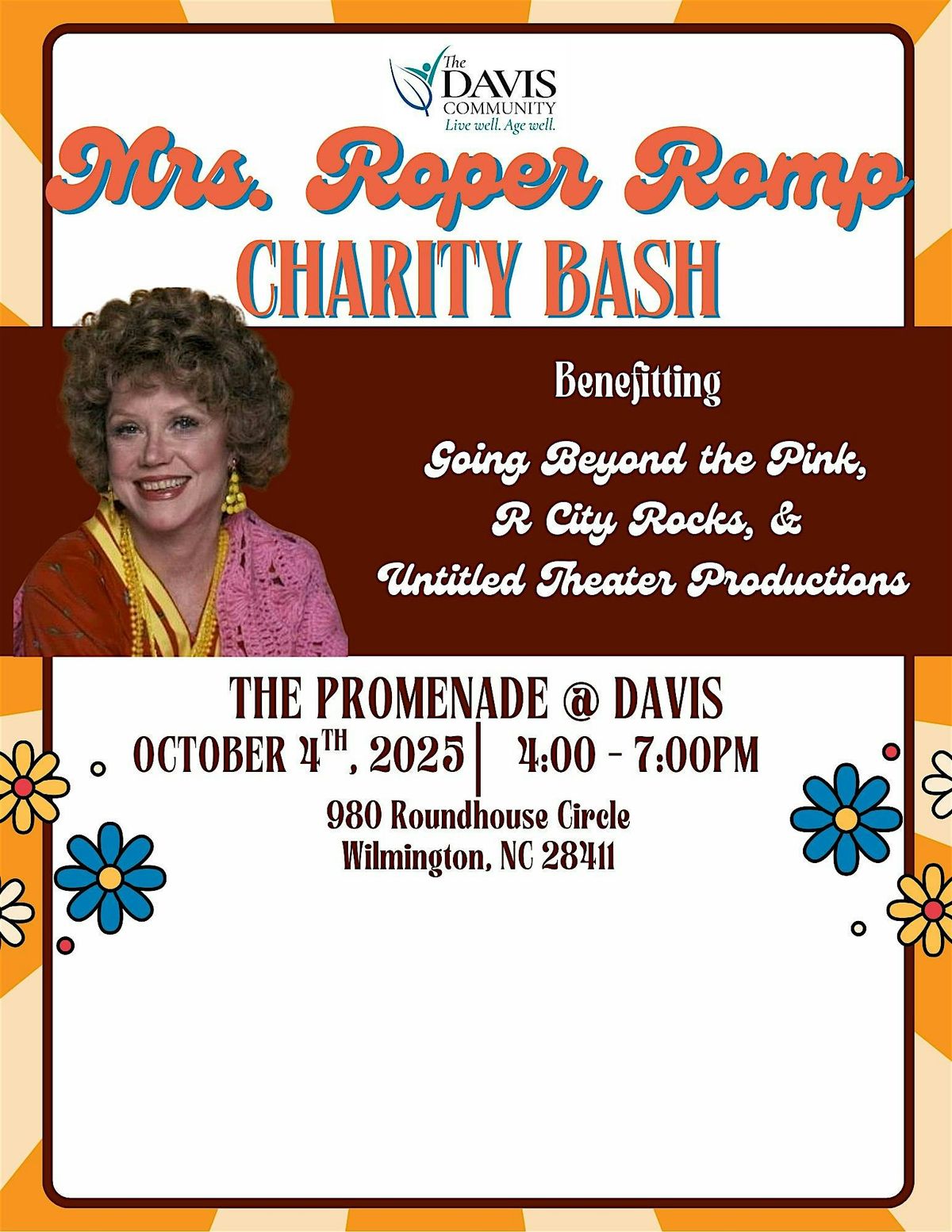 The Roper Romp is happening October 4th! Get ready for a fun-filled day with vendors, live 70's music, delicious food, a raffle, a costume contest, and more. Throw on your best caftan and celebrate with us in style while supporting local organizations!