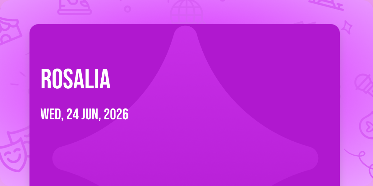 📍 Location: 29.7508, -95.3621🌟 Be part of history at Rosalia, an extraordinary gathering that will captivate your imagination! 🏛️ The prestigious Toyota Center in Houston, TX sets the stage for an unforgettable experience on June 24th, 2026 at 01:30 AM. ✨ They are bringing together the finest elements of entertainment and innovation to create moments that will take your breath away. From the moment you arrive, you'll be immersed in an atmosphere of wonder and excitement. 🎯 This carefully planned event ensures every guest experiences something truly special. 🎊 Early booking is recommended for this must-attend event of the season!