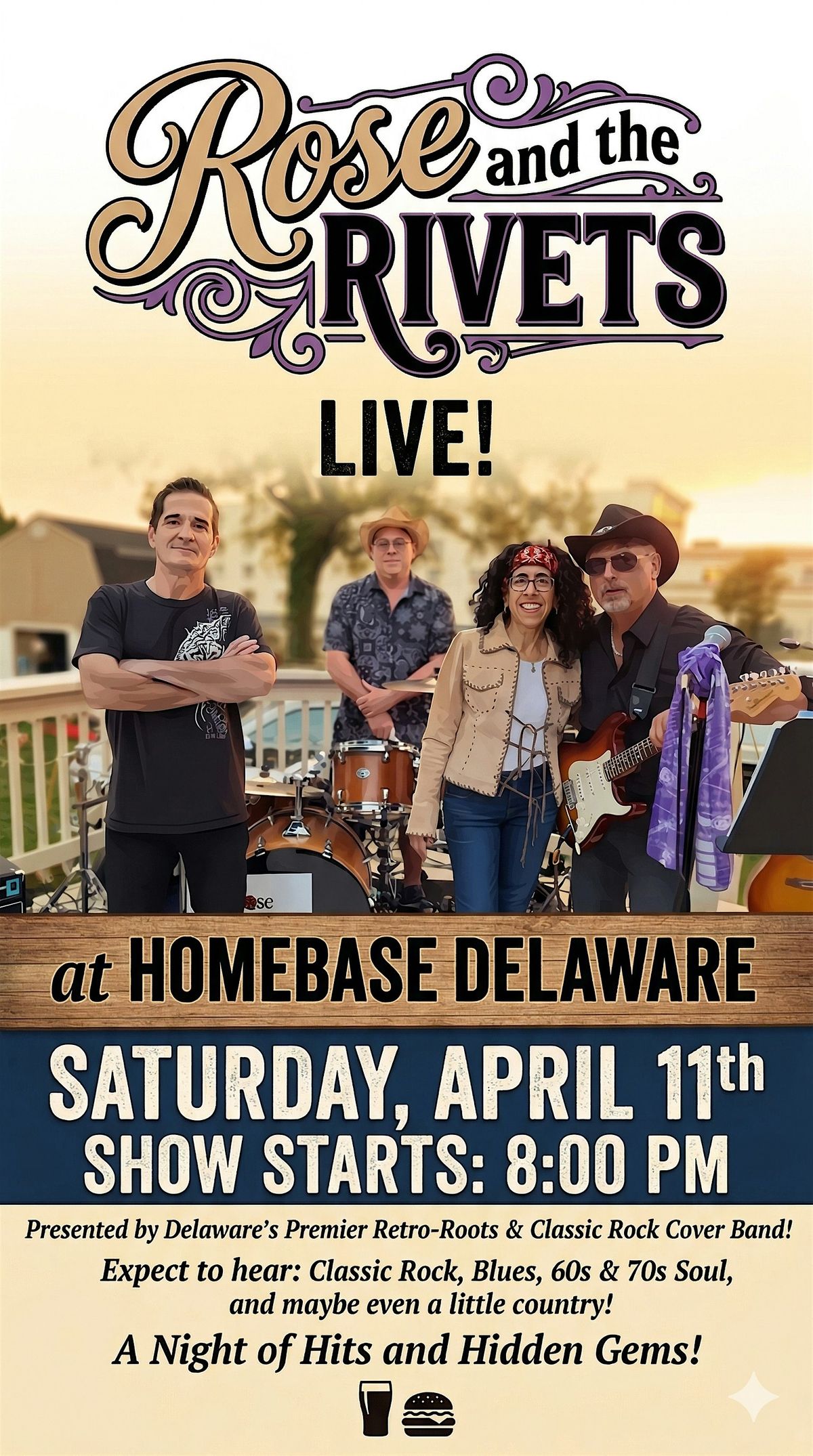 🕰️ HomeBase Delaware is thrilled to present the incredible Rose and the Rivets for a spectacular live performance!