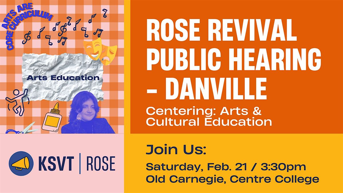 Join the Kentucky Student Voice Team for our fourth Rose Revival Hearing in Danville! This event will spotlight the need to strengthen arts and cultural education in Kentucky and focus on concrete solutions to ensure every student has access to rich, high-quality creative learning opportunities.