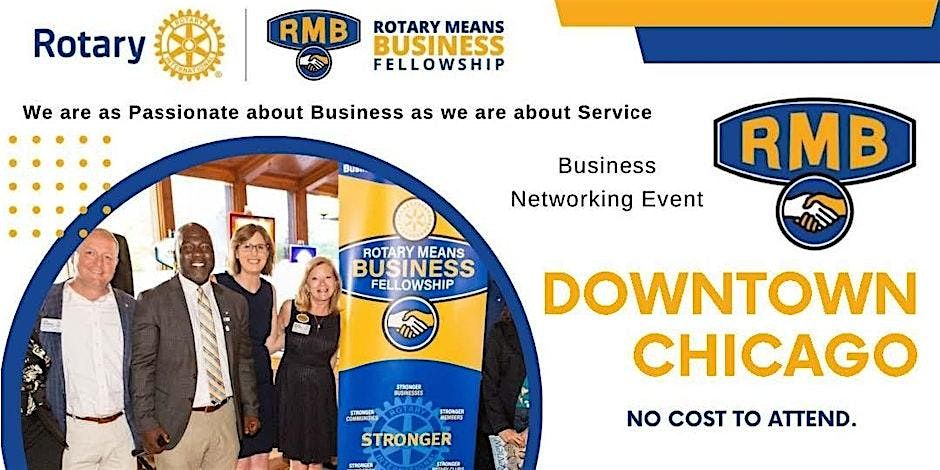 Rotary Means Business (RMB) – Downtown Chicago is a premier business network organization that convenes over lunch on the first Thursday of every month. We foster a culture where Rotarians support each other’s success by engaging in business together and providing referrals within the network. Our meetings also provide a valuable opportunity for outside business professionals to connect, collaborate, and learn from other professionals in business.