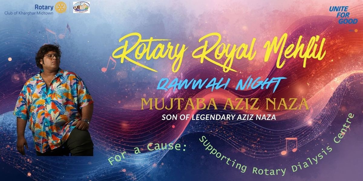 Organized by the Rotary Club of Kharghar Midtown and Rotary Kharghar Charitable Trust, this special evening promises a mesmerizing blend of devotion, rhythm, and cultural heritage. Audiences can expect powerful renditions of traditional Qawwalis, energetic tabla rhythms, harmonium melodies, and an immersive musical experience that celebrates the rich legacy of Sufi music.