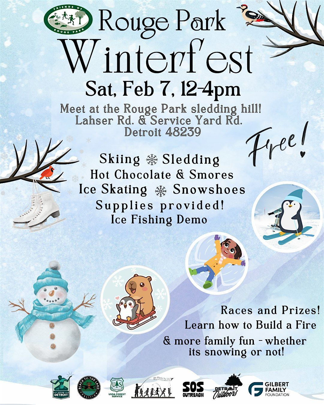 Hosted by Friends of Rouge Park, this annual winter festival promises a fun-filled day for the whole family to enjoy a variety of winter-time fun, treats and activities on Detroit's premier west side park!