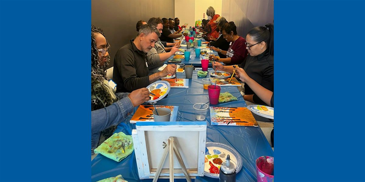 In this playful, low-pressure painting workshop, participants begin individual canvases and then periodically rotate them around the group. Each painter will start and end with their own canvas, shaped by many hands, and will take this canvas home.