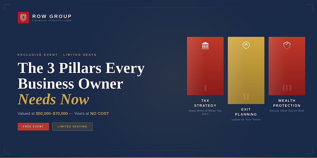 This exclusive, limited-seating event reveals the 3-pillar financial strategy that high-earning business owners are using right now to protect everything they've built.