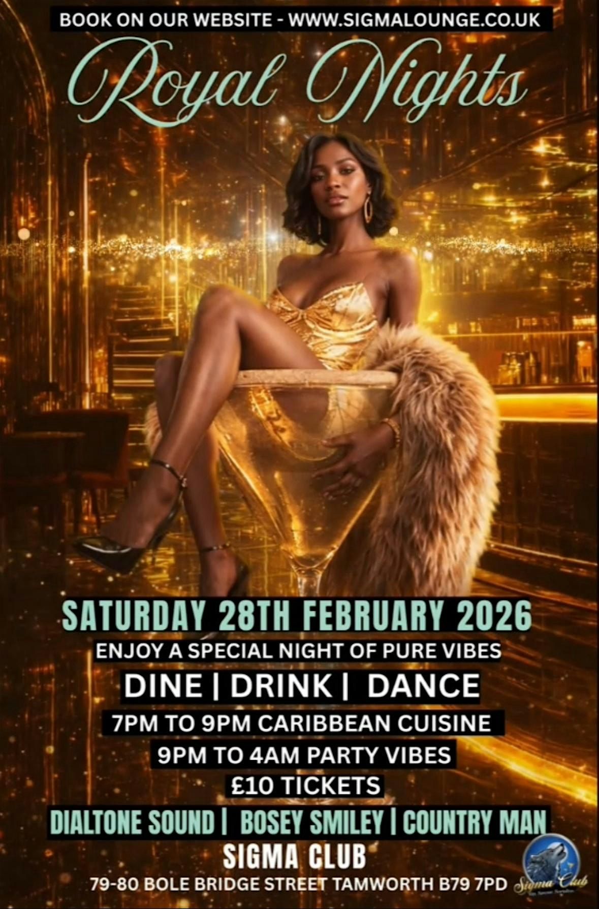 Join us as we enjoy ROYAL NIGHTS with the finest DJ line up; Nottinghams 'Dialtone Sound', Manchester’s 'Bosey Smiley' and Birmingham’s 'Countryman' playing the best of Reggae with an injection of Soul & RNB.