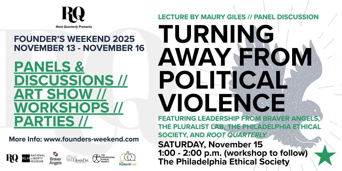 It's a grassroots convening by Root Quarterly magazine with many partner organizations, all of whom are intersted in promoting a pluralistic culture of free expression. A thousand years from now, the first 500 years of our country will be considered early-American history. That means we are all founders, responsible and accountable for the direction of the United States. America is an experiment. Be part of it.