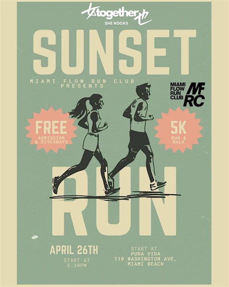 Join us for a sunset run in collaboration with Miami Flow Run Club on Sunday, April 26 at 5:30 PM at South Beach.