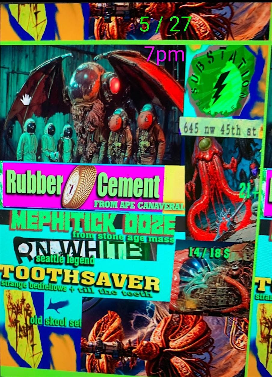 Rubber (() Cement - Coalescing into a specific burning vision in 1994 Rubber (() Cement was put together as a direct idea for a super science future that will happen. The next technological breakthroughs are realized in a zero-tech way with the emulation of the unrealized 'next step' & the actual "vision" existing in the present (picture a cargo cult with stats on NASA industries).