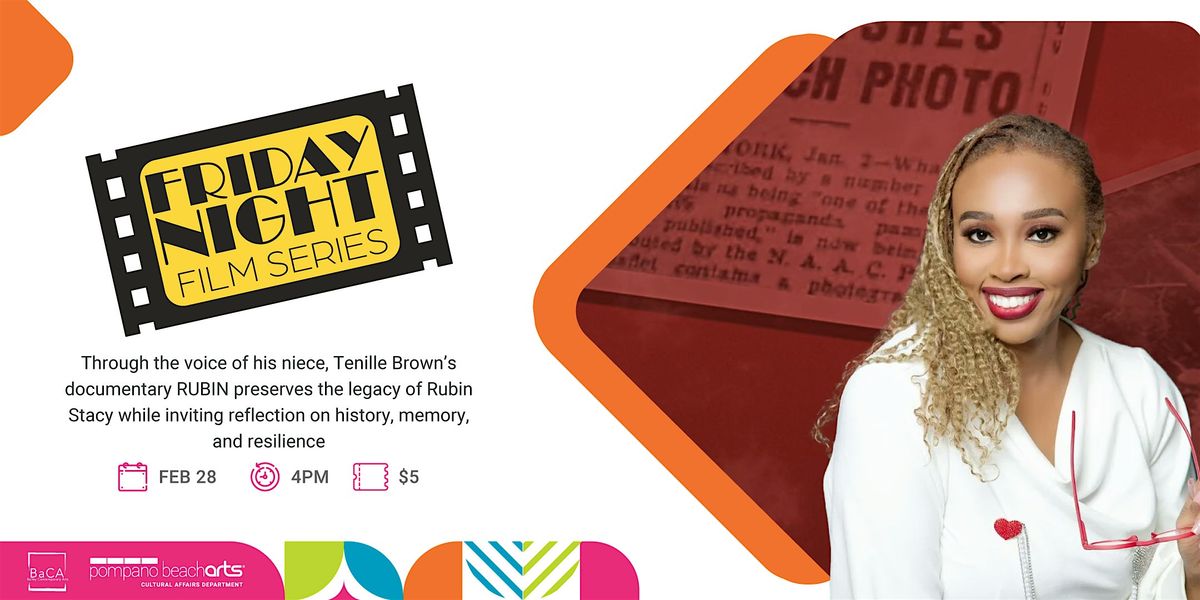 RUBIN: An Original Documentary Film directed by filmmaker Tenille Brown, this powerful documentary explores the life and legacy of Rubin Stacy, whose tragic death in 1935 left a lasting impact on Broward County. Through the voice of his niece, Anne Naves, the film weaves personal history with community memory, ensuring that this story is not forgotten. More than a retelling of events, RUBIN is about remembrance, resilience, and the importance of keeping local history alive. Following the screening, director Tenille Brown will join us for a conversation about the making of the film and the ways storytelling can help communities reflect, heal, and grow together.