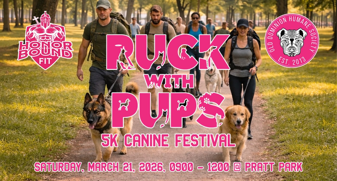 Hosted in partnership by Honor Bound FIT and The Guidon Foundation, and supported by Old Dominion Humane Society and the Stafford County Sheriffs Office, this guided ruck/walk invites participants to carry weight (optional), leash up a pup, and hit the trail together in support of two important causes: strengthening our community and supporting animal welfare.