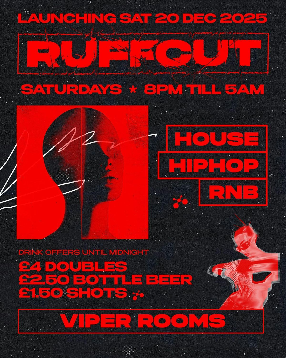 Join us for RUFFCUT Saturdays, the hottest Saturday night vibe in town! Get ready to groove to an electrifying mix of House Music, HipHop, and RnB all night long. Doors open at 6 PM with cheap drinks to kick off your evening: ÂŁ4 doubles, ÂŁ2.50 bottle beers, and ÂŁ1.50 shots. Entry is FREE until 1 AM, so come early and stay late!Whether you're here to dance, chill, or just enjoy great music and good vibes, RUFFCUT Saturdays is the place to be. Don't miss out on the freshest Saturday night experience!---Would you like me to tailor this further for a specific venue or audience?Email - [email protected] - 07921 835192For birthdays, occasions, group bookings or society socials get in touch to see what we can offer you!