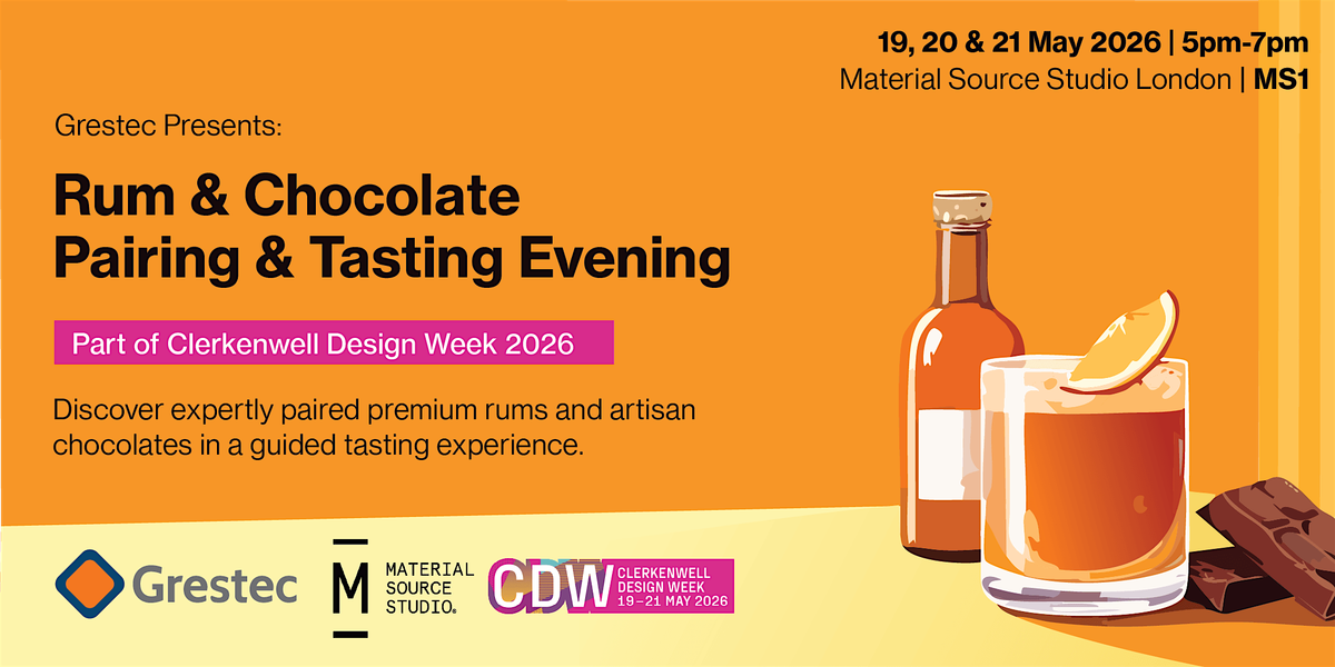 Step away from the showroom hustle and join us at Material Source Studio London for a refined sensory experience. As part of our Clerkenwell Design Week 2026 programme, we are bringing together the worlds of premium craft rum and chocolate for an evening of flavour, texture, and socialising.