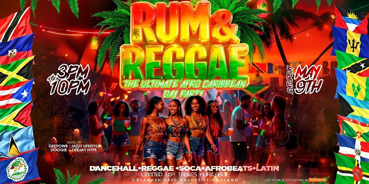 Drinks, food, Reggae,Dancehall,Soca, Afrobeats hitting May 9th The ultimate Afro-Caribbean day party in Oakland California