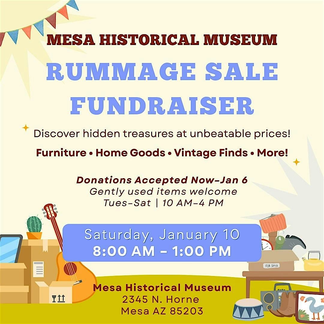 Kick off the New Year by clearing out your closets and donating to a great cause!The Mesa Historical Museum is now accepting gently used item donations for our upcoming Rummage Sale Fundraiser (please note: no clothing or furniture).