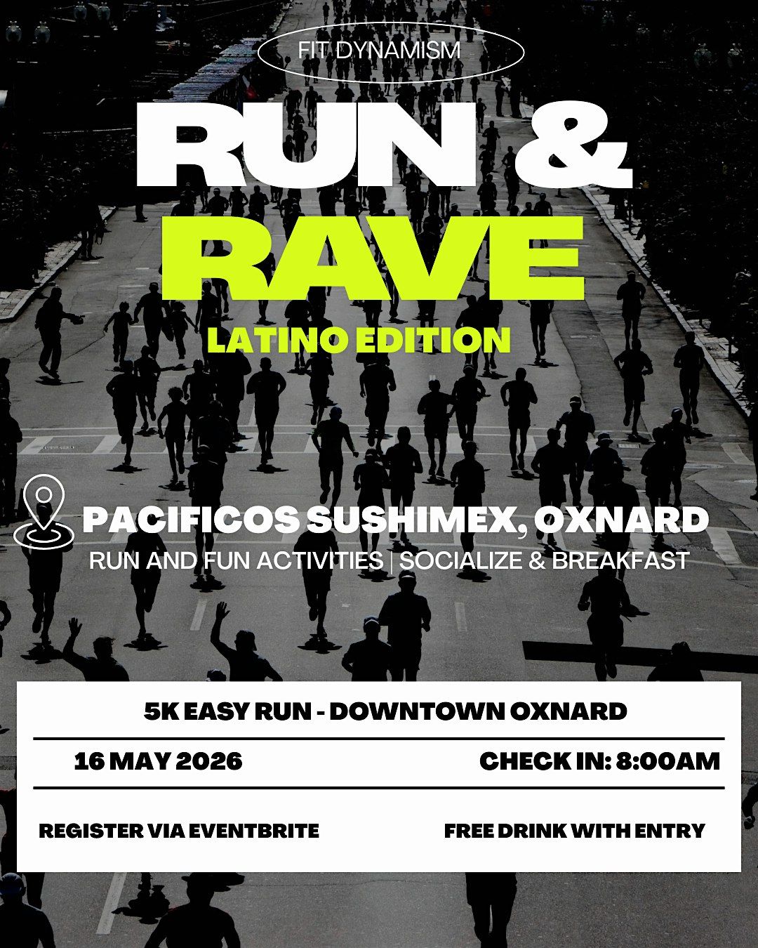 Step into a curated Run & Rave experience where fitness, cultura, and community come together. We’ll start with a feel-good run, then transition into an elevated post-run vibe at Pacificos Sushimex.