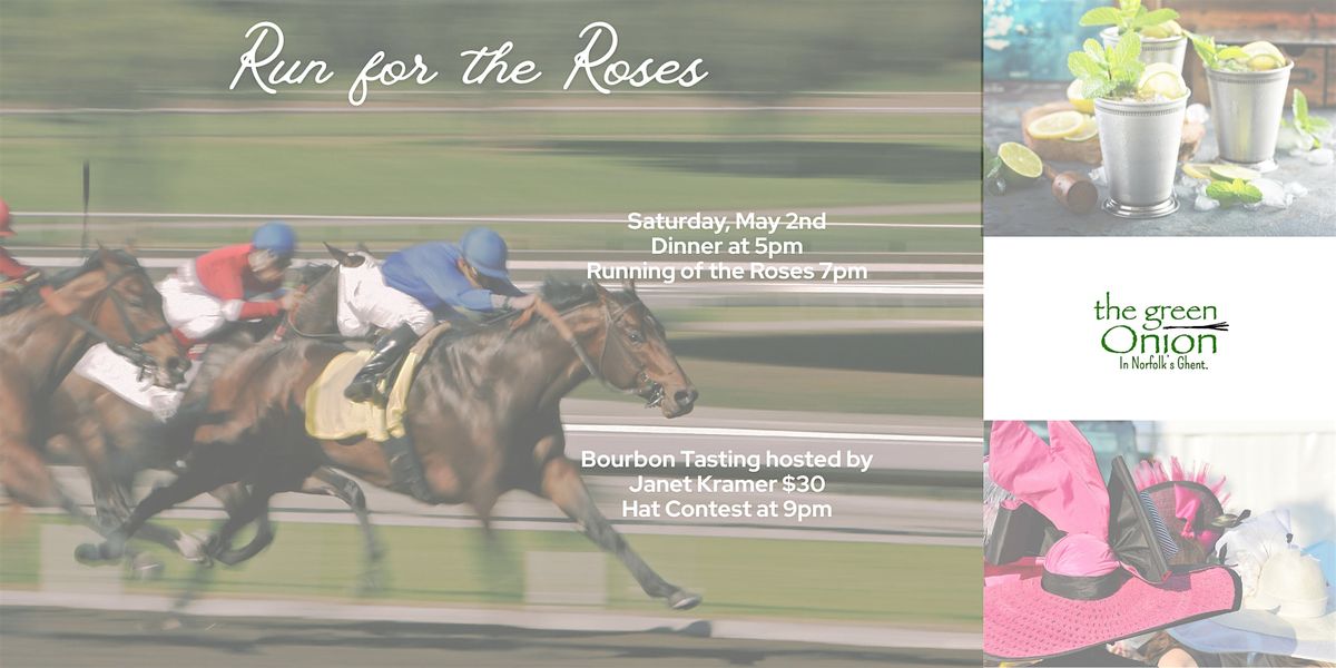 Join us for dinner at 5pm, a viewing of the Running for the Roses at 7pm, a bourbon tasting hosted by Janet Kramer and a Hat contest.