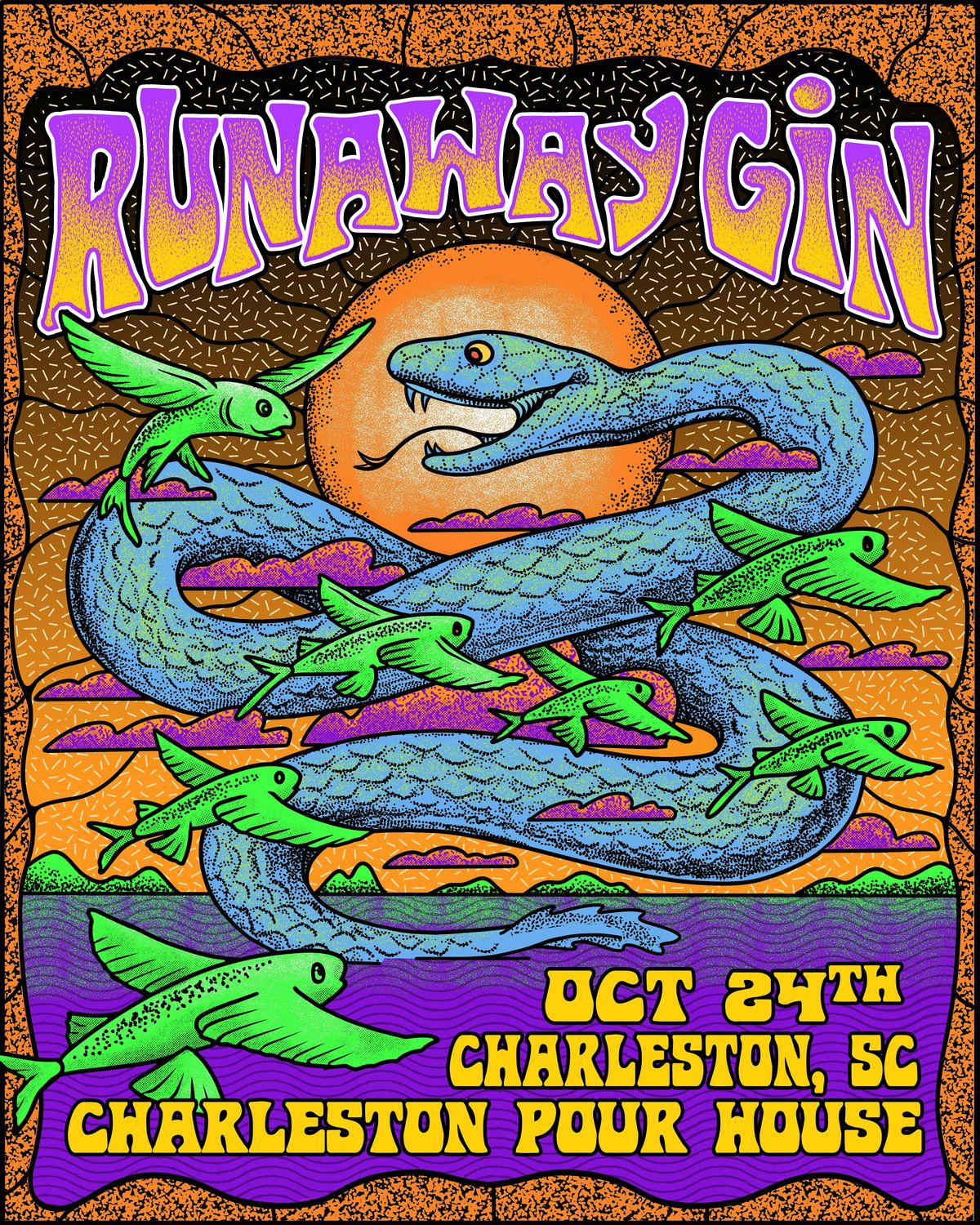 With over 500 shows performed since its inception in 2014, Runaway Gin is the World’s Most Notable Phish Tribute Project. They have been voted the Best Phish Tribute in the World two years in a row and 2022 Charleston Jam Band of the Year. On July 4th, 2015, after the second show of the Grateful Dead GD50 run, Runaway Gin sold out the Hard Rock Cafe in Chicago catapulting them from a Southeastern regional act onto the National scene. The band has also made numerous festival appearances including Rooster Walk Music and Arts Festival, Resonance Music and Arts Festival, the Woodlands Music and Arts Festival, Nextival (headliner), Hidden in the Hollow Festival and has headlined top national venues such as: the Norva, the National, Jannus Live, and the Georgia Theater. The members of Runaway Gin have united with the goal of creating musical moments inspired by Phish. The band's song list is constantly growing and their improvisational and communication skills are constantly developing independently and together. Like Phish, Runaway Gin will never play the same show or jam the same way twice making every show a unique experience and every moment pure artistic creation.