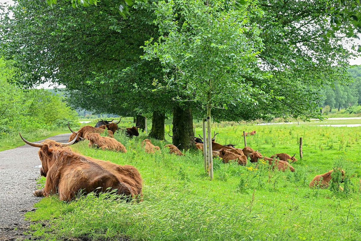 De Schotse Hooglanders hebben een belangrijke taak in het onderhoud van de Broekpolder. Ze hebben een wisselend menu van gras, bladeren, schors en zogren zo voor variatie in De Ruigte, het leefgebied van deze grote grazers in de Broekpolder. Gelukkig houden ze ook veel van berenklauw en eten ze de bladeren. Dit voorkomt de verspreiding ervan.