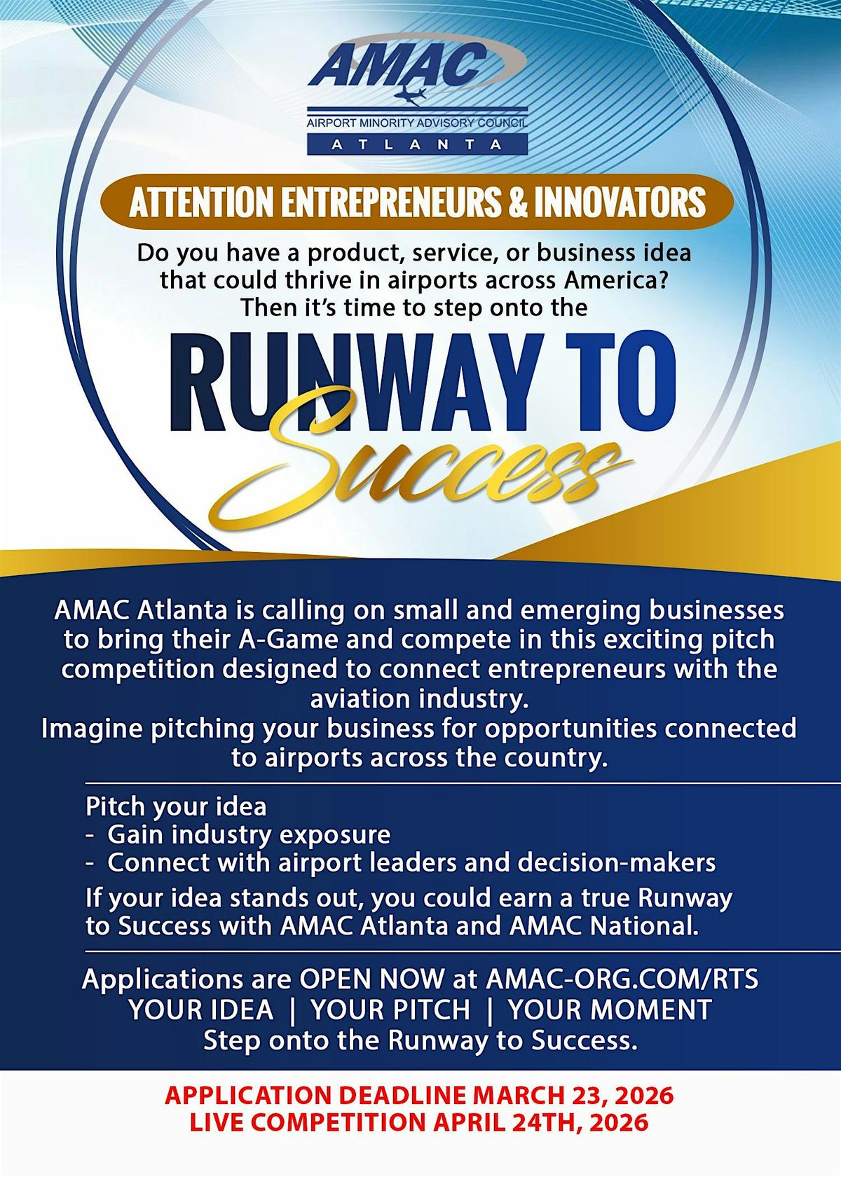 Get ready for an amazing in-person experience with RUNWAY TO SUCCESS brought to you by AMAC Atlanta! RSVP IS REQUIRED. NO EXCEPTIONS.