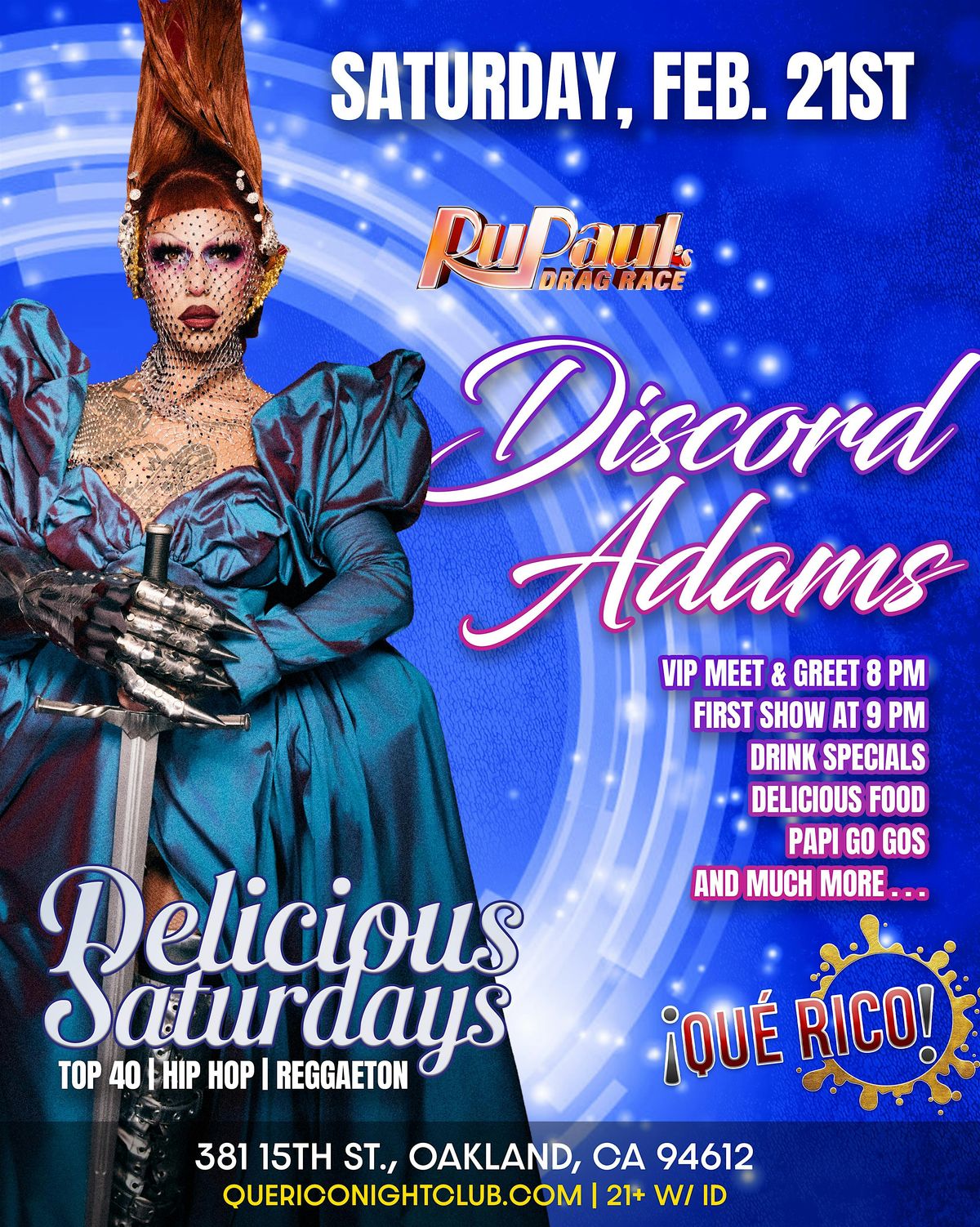 Join Valentino Presents at Que Rico Nightclub on February 21, 2026 at 6:30 PM for an unforgettable night with Discord Addams.