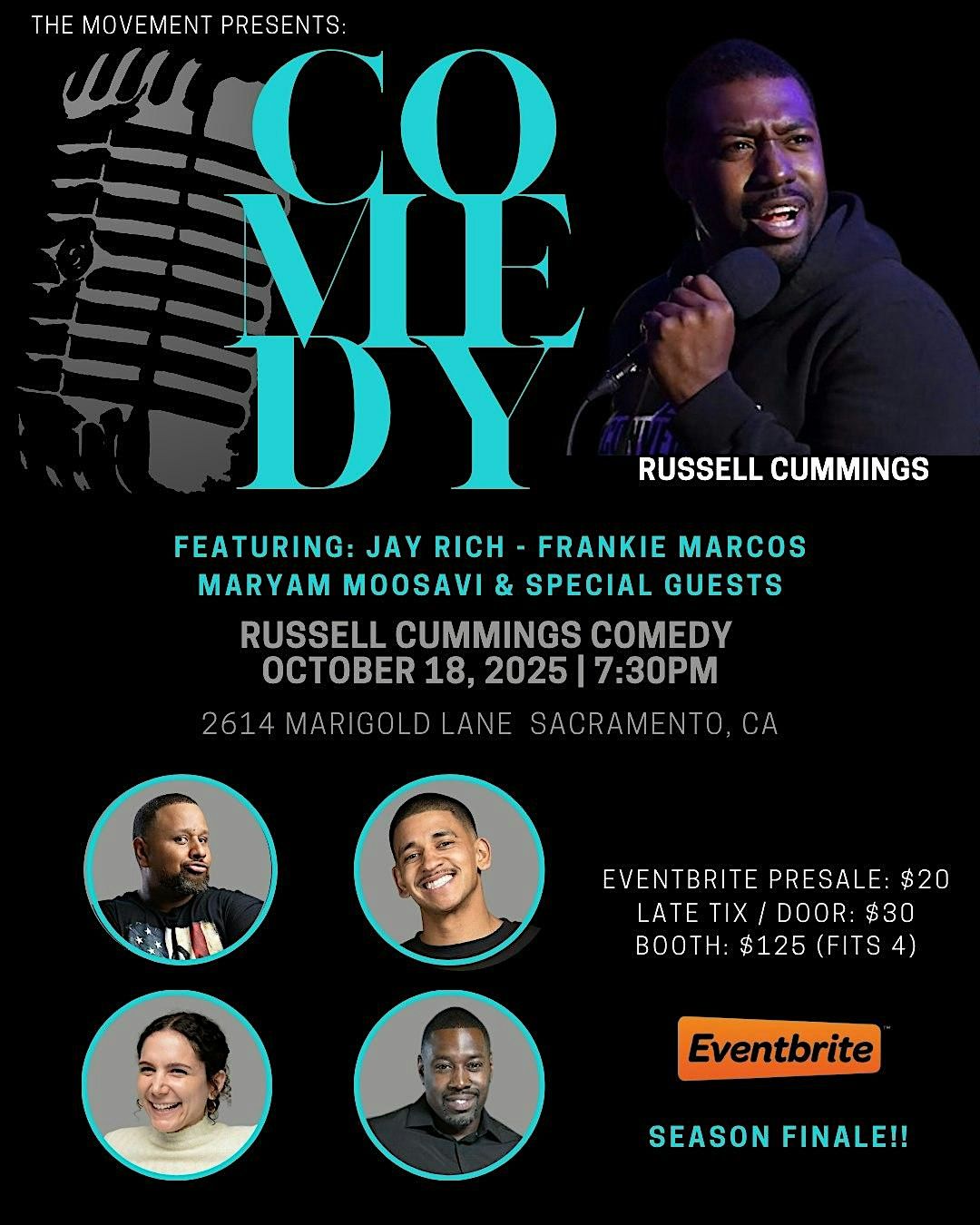 Russell Cummings Comedy is a diverse comedy show meant to tickle all demographics. This recurring event has become one of Sacramento's favorites! With years of networking and experience producing events, the curators strive to create a well balanced, upbeat night that will leave you feeling good on the way home and for days to come.