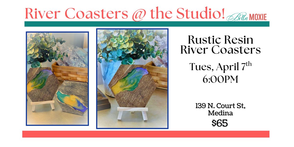 Join us in person for a fun and creative evening crafting your very own set of 4 River Coasters. Learn the process of dying resin and adding in elements to make your pieces shine! Bring your friends or come solo to unwind, get crafty, and create.
