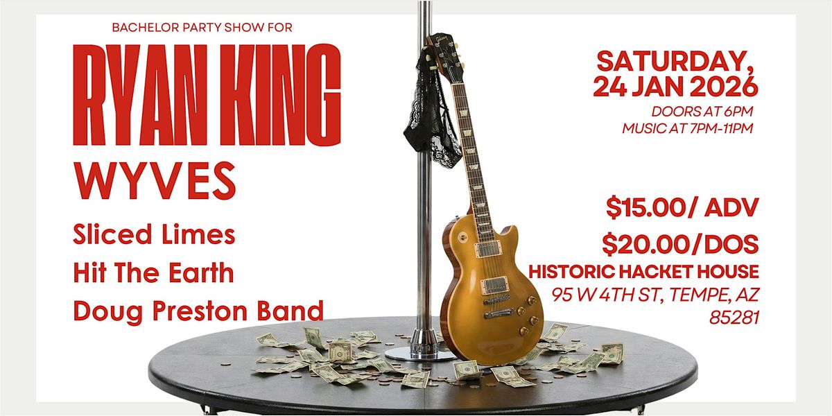 Get ready for an epic night featuring WYVES, Sliced Limes, Hit The Earth, and Doug Preston all in one place. This is an in-person event. Don’t miss out on the fun and celebration as we send Ryan off the market in style!