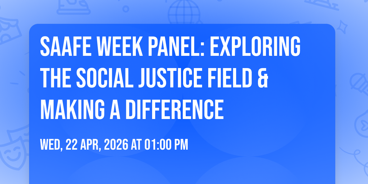 SAAFE Week Panel: Exploring the Social Justice Field & Making a Difference will take place at the University Student Union (Grand Salon)