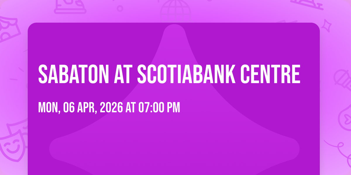 🌟 Journey into wonder at Sabaton at Scotiabank Centre, where extraordinary experiences await around every corner! 🏛️ Set against the backdrop of Scotiabank Centre in dynamic Halifax, NS, this event promises to exceed all expectations. 📅 Join us on September 23rd, 2026 at 07:00 PM for a celebration that combines innovation, entertainment, and community spirit in perfect harmony. ✨ There will be an atmosphere where memories are made and stories come alive, ensuring every guest experiences something truly remarkable. 🎊 This is more than just an event; it's a journey into the extraordinary!