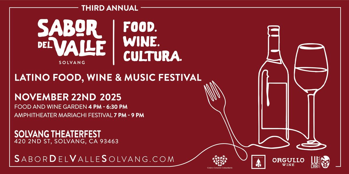 Sabor Del Valle Solvang is back! Join us for a harvest celebration at The Solvang Theaterfest with Centro Corazón Comunitario enjoy delicious Latino food, wine, live music and vibrant culture on Saturday, November 15th, 2025.