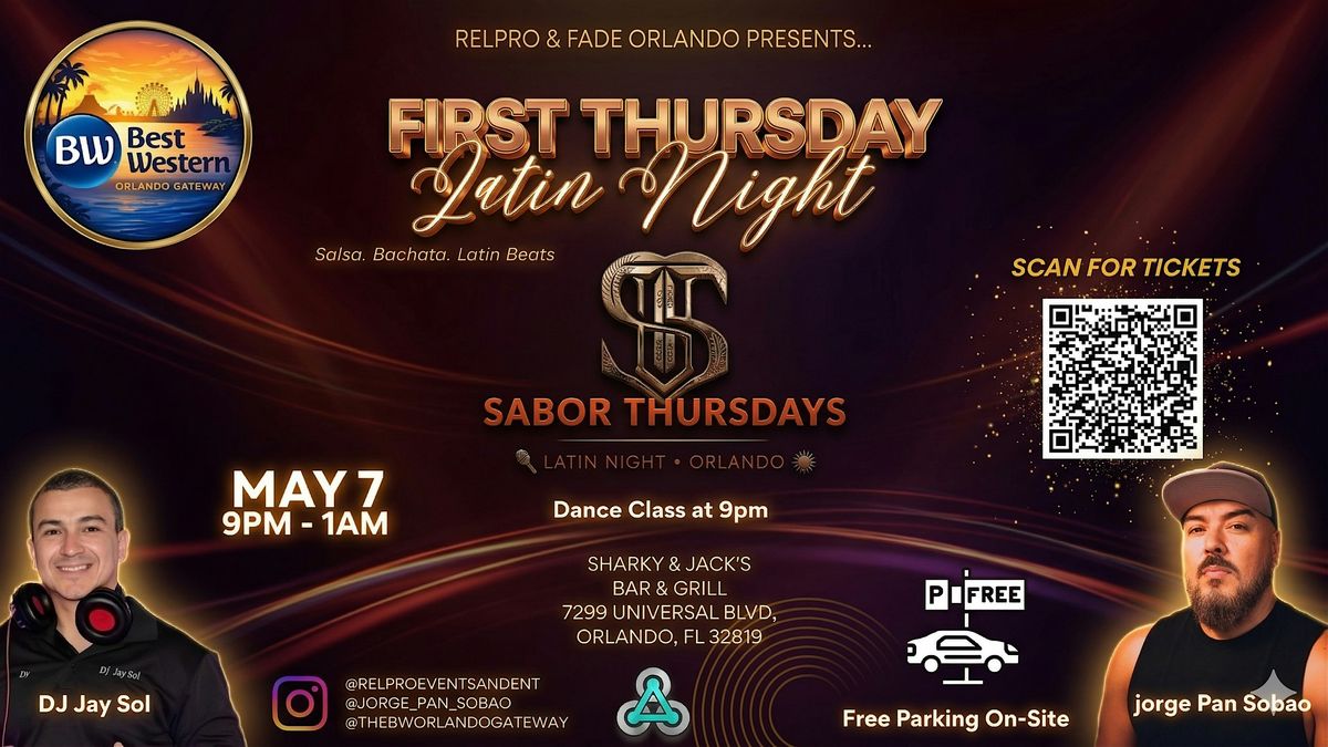 #SaborThursdays #OrlandoNightlife #LatinDanceOrlando #SalsaBachata #DJJaySol #BestWesternOrlando #SharkyAndJacks #OrlandoEvents