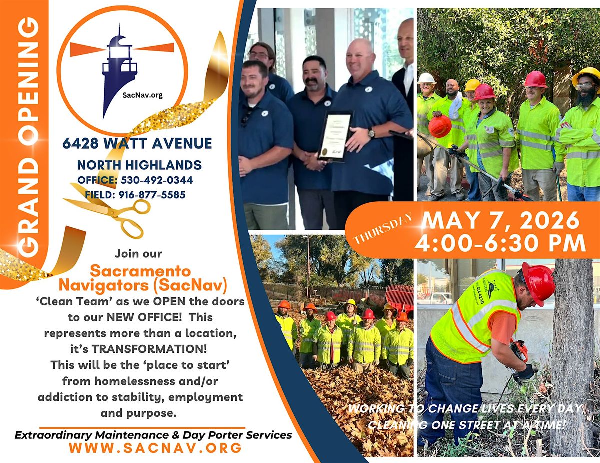 The grand opening on May 7, 2026 of The Lighthouse at 6428 Watt Avenue, North Highlands, is the physical embodiment of SacNav's growing stability and reach. The new headquarters will serve as the operational hub for SacNav's expanding team of crew members, a training facility, and a gathering place for the community partnerships that make the work possible.