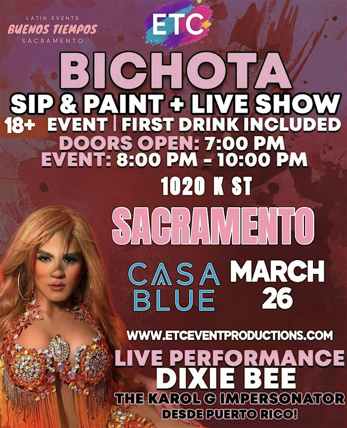 SACRAMENTO KAROL G SIP & PAINT WITH KAROL G IMPERSONATOR FROM PUERTO RICO