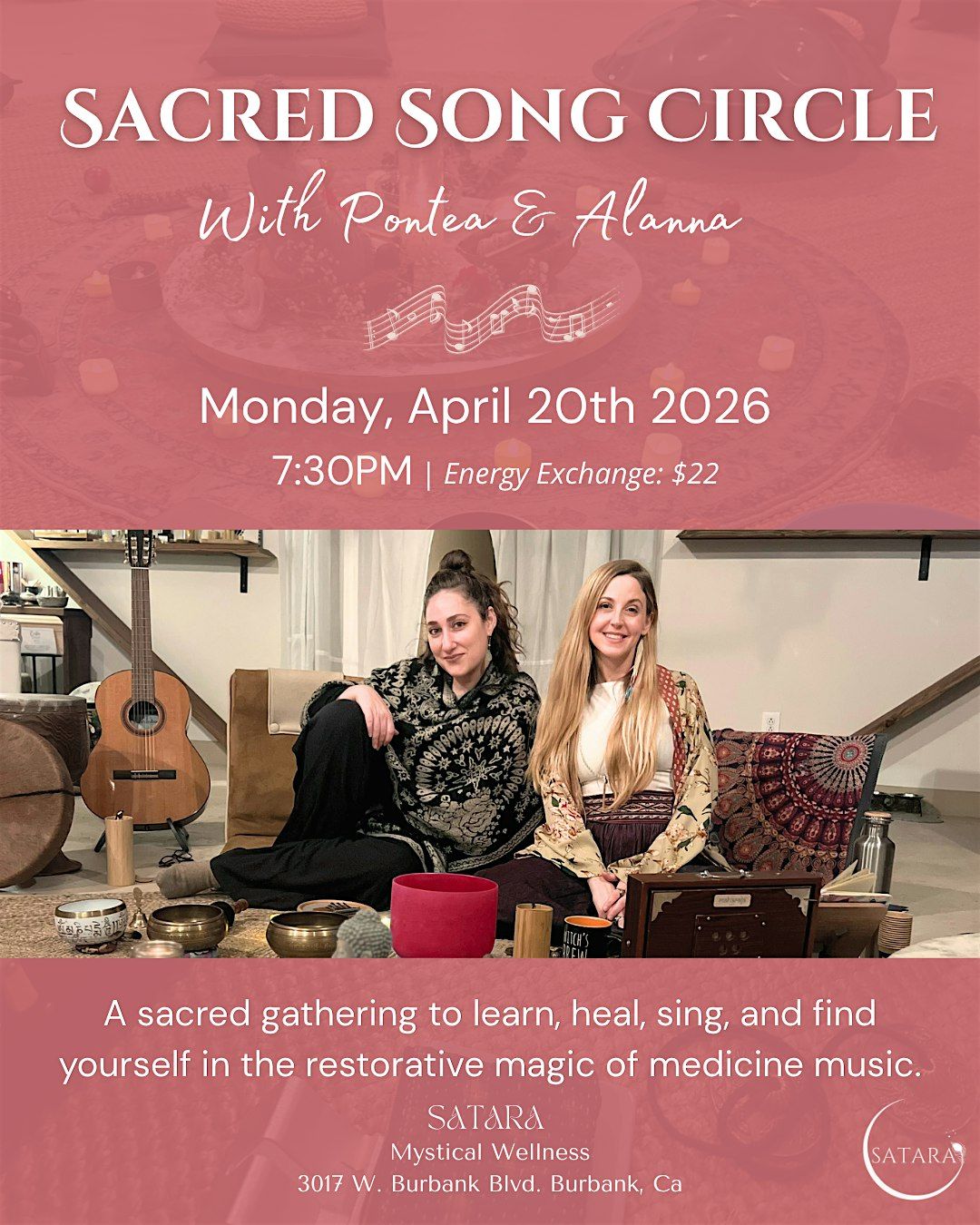 Join us for our monthly Sacred Song Circle with Alanna & Pontea at SATARA Mystical House of Wellness. Sing, hum, listen or simply receive.✨