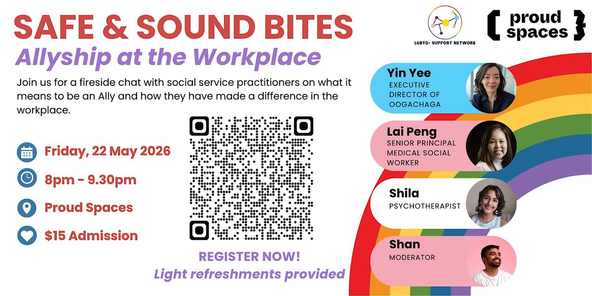 The LGBTQ+ Support Network is a response to the need for LGBTQ+ affirming care in social services and common spaces for LGBTQ+ Social Work professionals to gather and share. Our objectives include training allies and social service professionals who are keen to learn about LGBTQ+ topics. Safe and Sound Bites is the first informal series of fireside chats to hear from Social Service Practitioners with lived experiences and/or who are currently working with LGBTQ+ clients.