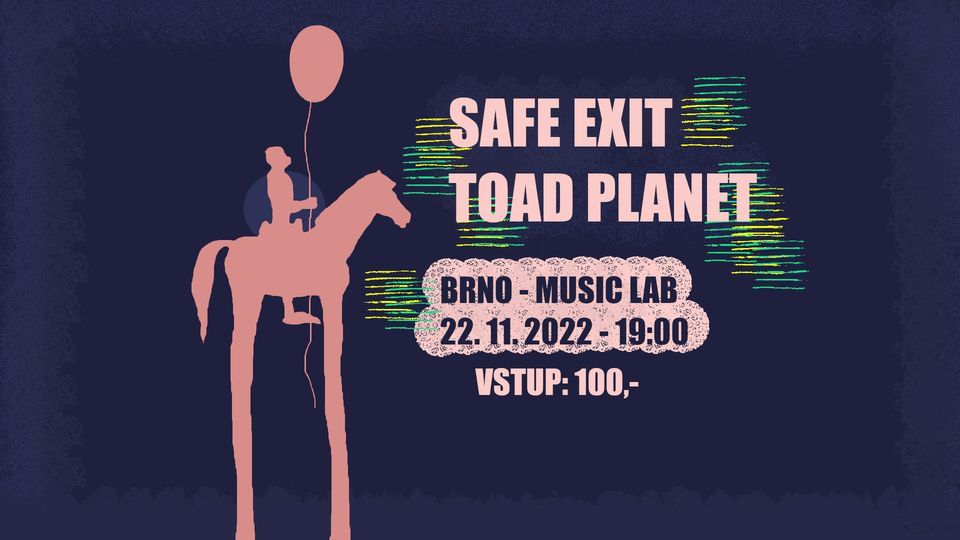 Doraž v úterý 22. listopadu do Music Labu v Brně, kde zahrají dvě mladé kapely.Jednou z nich je SAFE EXIT – studentská kapela z okolí Pardubic, hrající převážně rock často obohacený o saxofon. V momentální pětičlenné sestavě existuje od konce roku 2018. Téměř po roce a půl své existence vydává v dubnu 2020 své první album "Za Dveřmi".