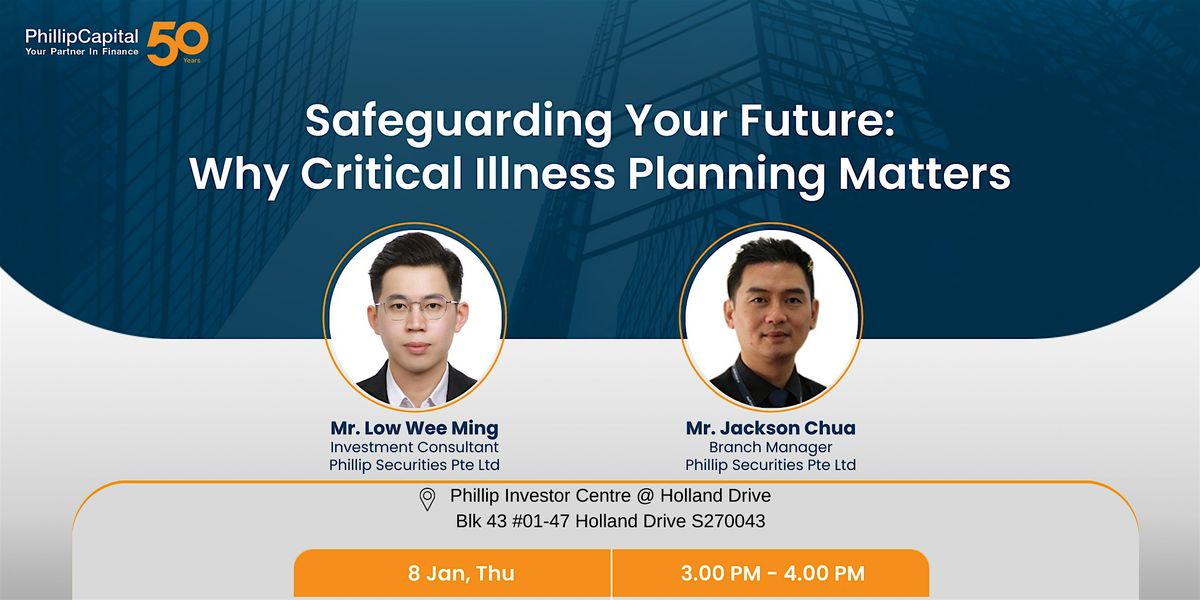 Join us on 8 Jan, Thursday at 3.00pm, where Mr. Low Wee Ming, Investment Consultant at Phillip Securities, shares practical insights on protecting yourself and your loved ones through proper critical illness planning. This session will cover: