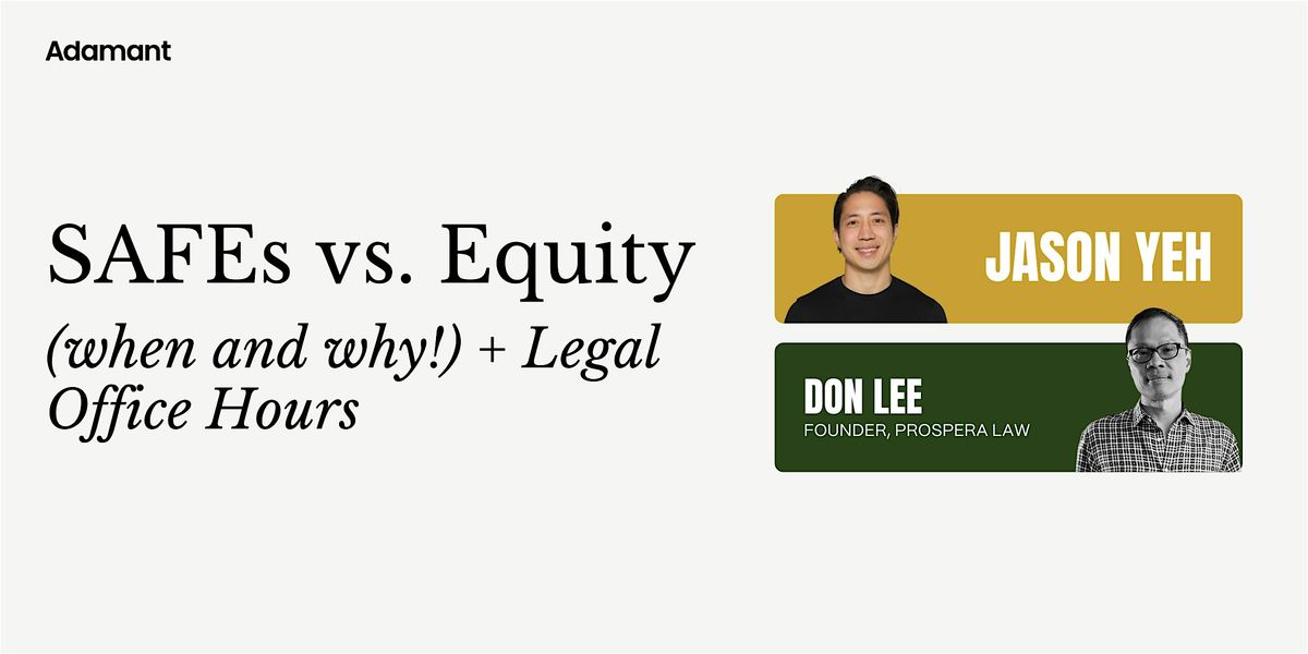 SAFEs vs. Equity (when and why!) + Legal Office Hours