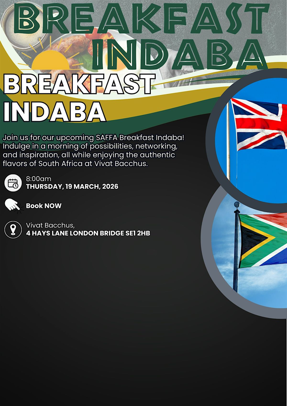 Join us at Vivat Bacchus for an energising morning of networking, inspiration, and authentic South African hospitality right in the heart of London. Whether you are a seasoned professional or new to the SAFFA business community, this is your chance to build meaningful connections in a warm, welcoming environment that blends the best of South Africa and the UK.